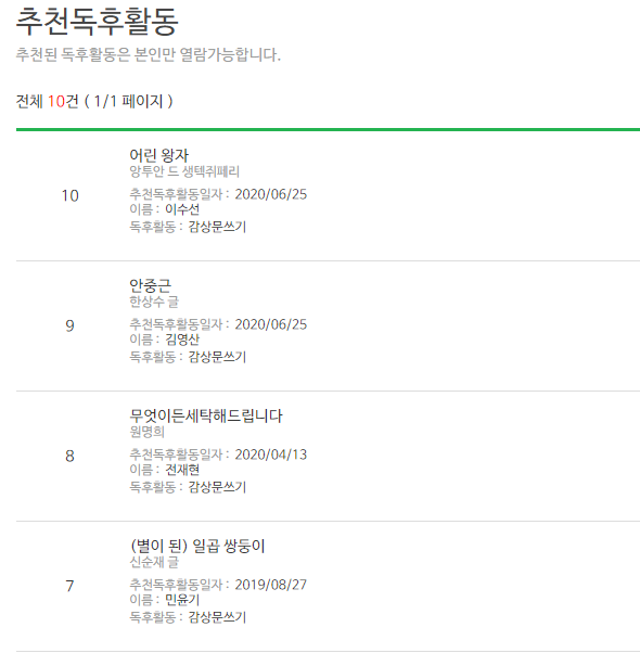 종이 쓴 독서감상문을 담당 선생님께 제출할 경우 학교생활기록부에 기록이 됩니다