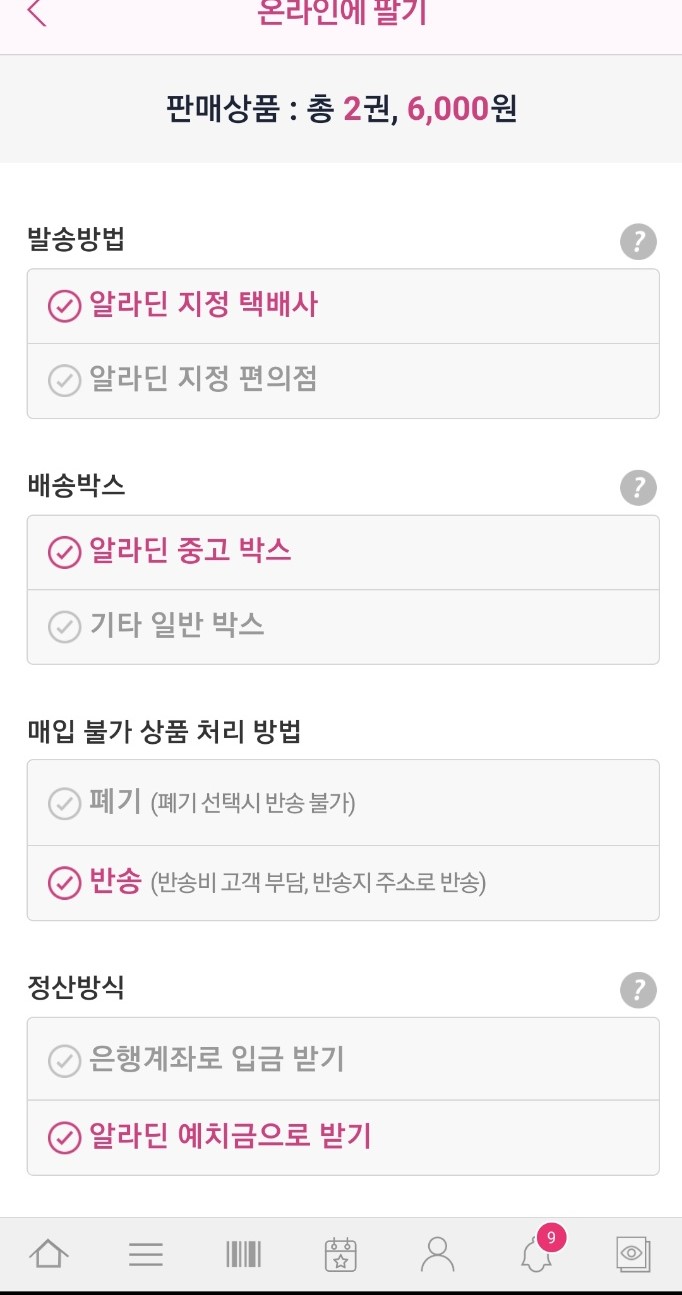 알라딘 중고서점에 판매 시 알라딘 지정 택배사를 이용하는 것이 간편하고 빠릅니다.