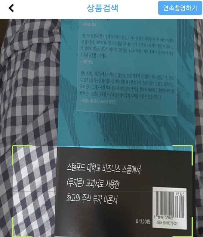 바코드 스캔 화면이 뜨면 책의 바코드를 스캔합니다.