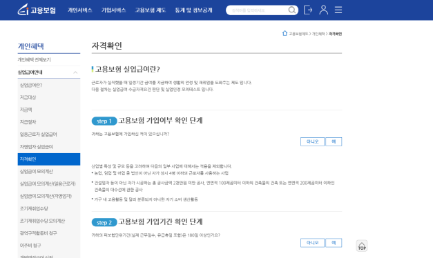 고용보험 가입 유무를 모르거나 자격이 안되면 해당이 안된 사유가 나옵니다.