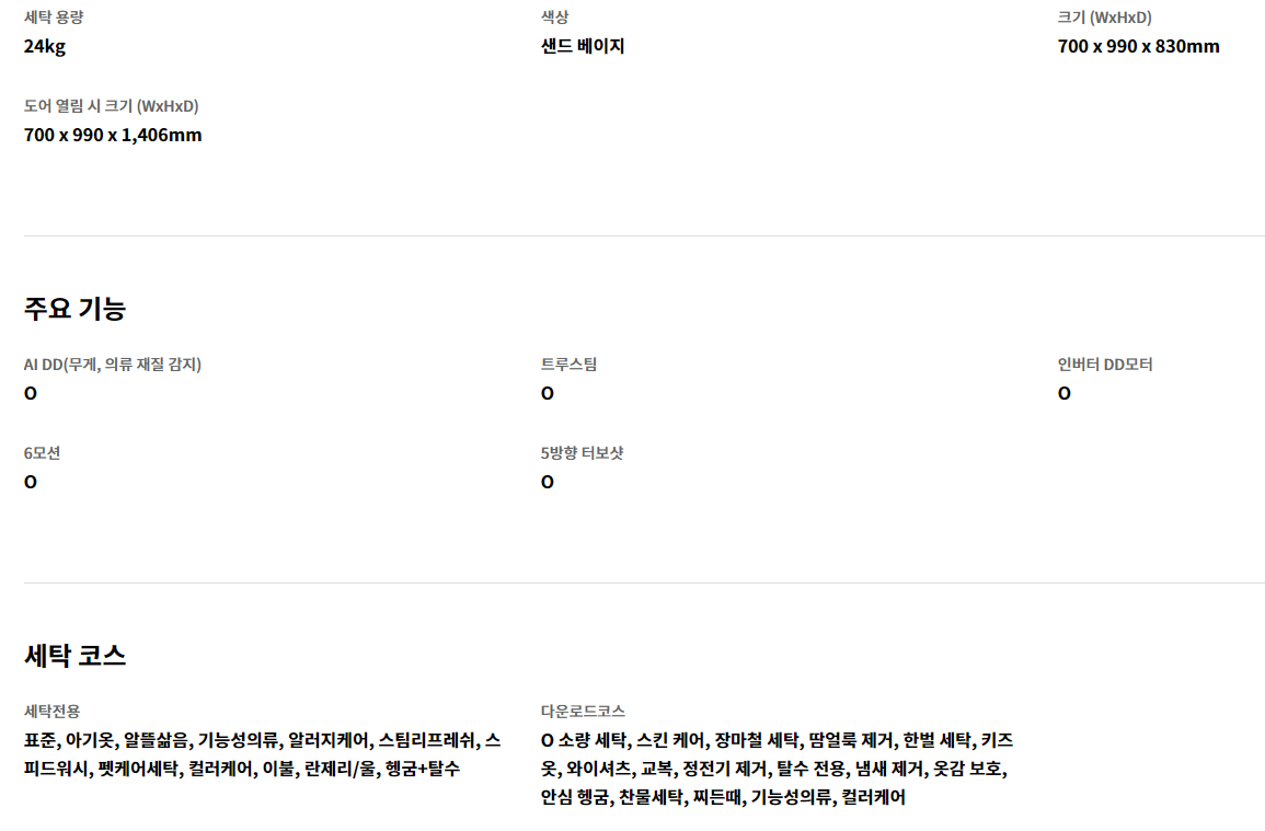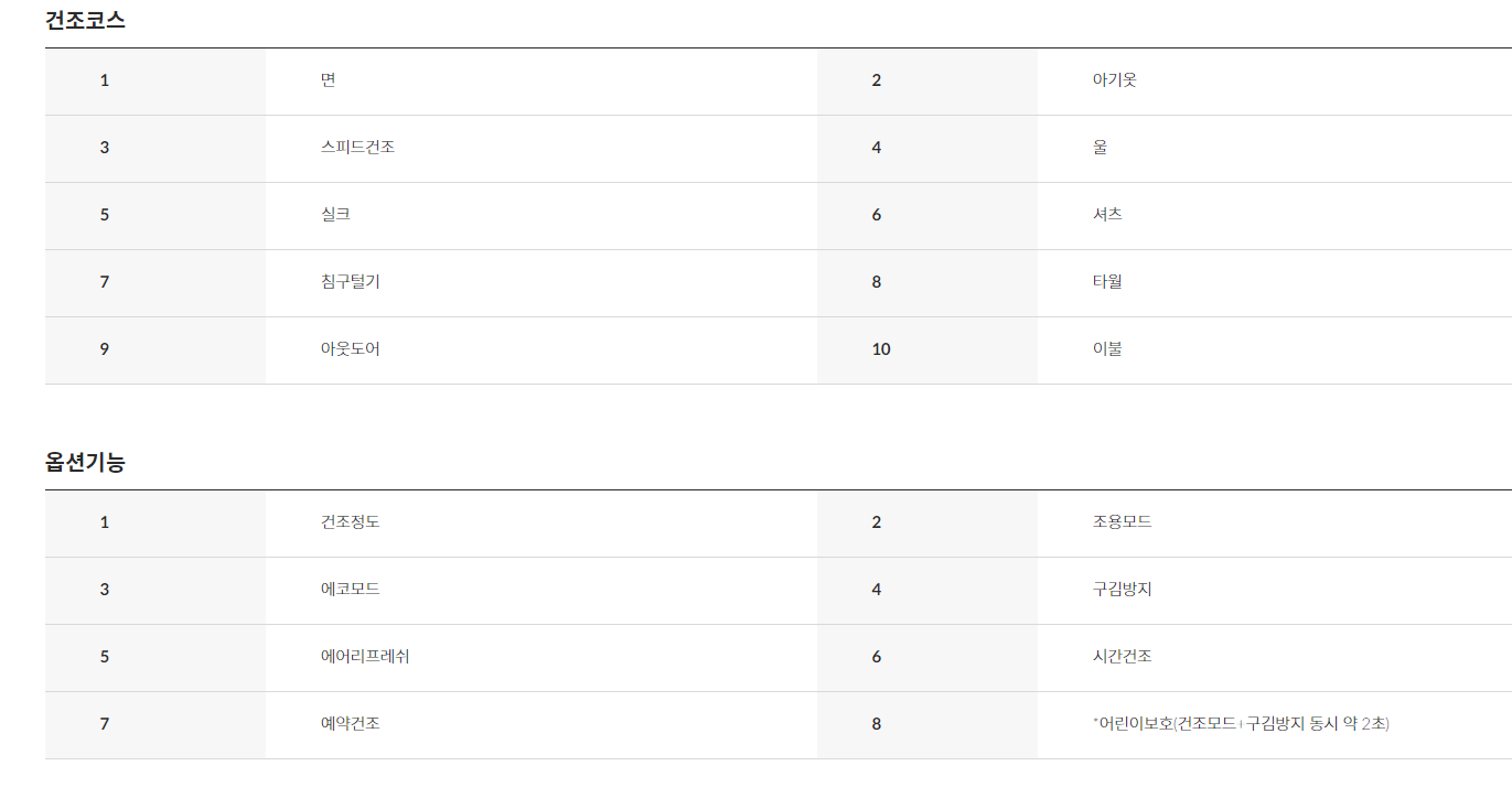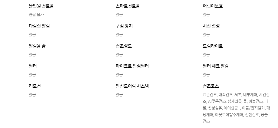 lg 건조기 의 스펙입니다