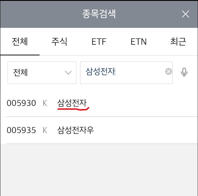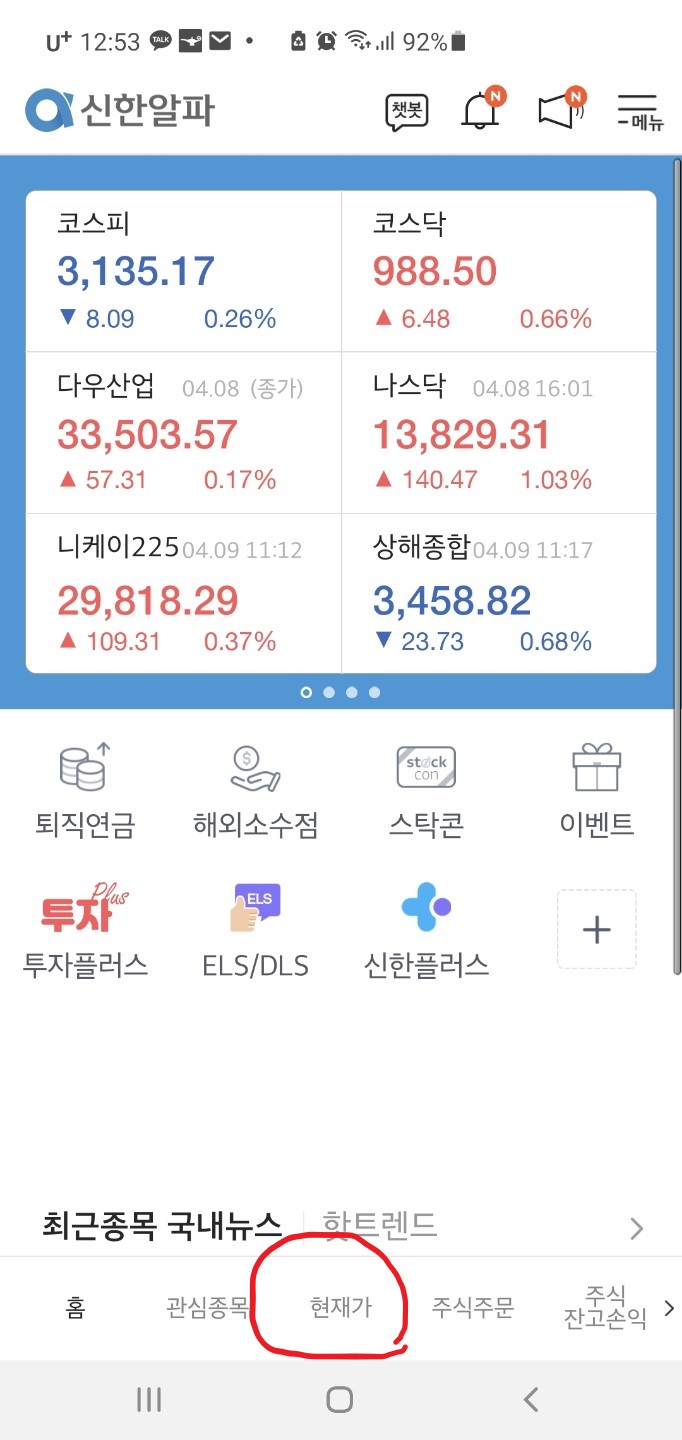 현재가에서 본인이 사고자 하는 주식의 이름을 입력하고 검색창 밑에 주식 목록이 뜨면