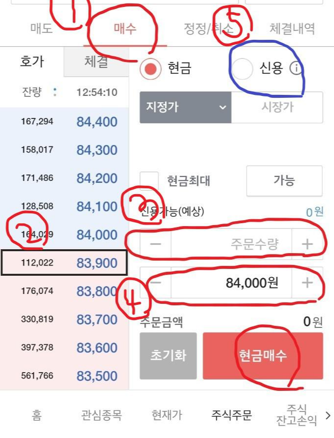 한 가지 주의사항이 있습니다. 주식을 매수할 때 현금 신용 란에서 나도 모르게 신용에 체크돼있는