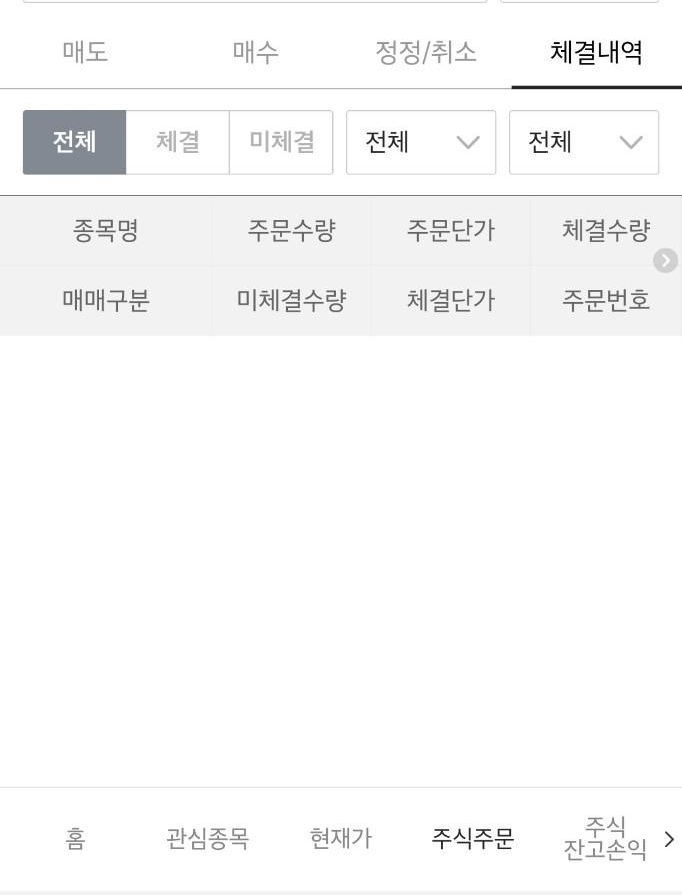 만약 주문한 내역이 체결이 되었다면 체결내역 항목에 뜹니다.