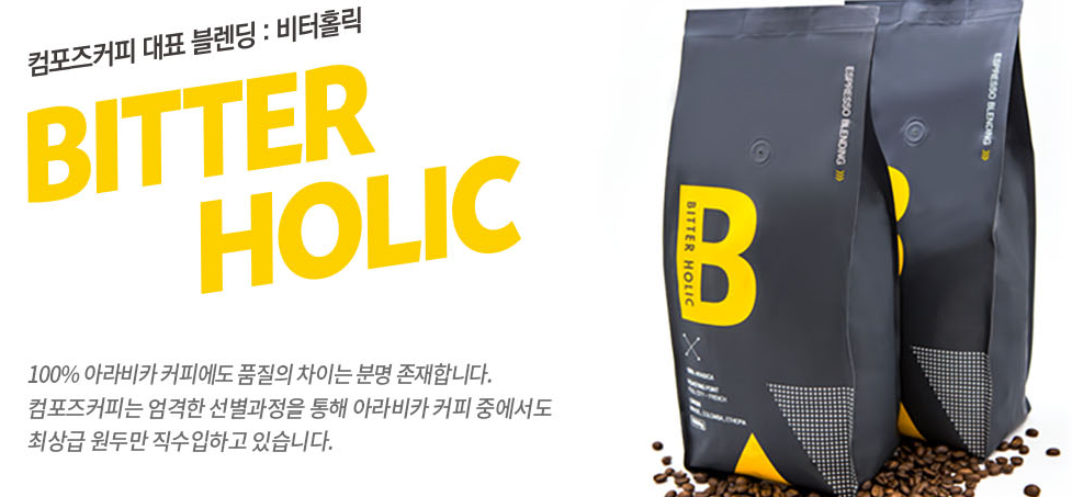 컴포즈 커피의 대표 블렌딩 비터 홀릭입니다.