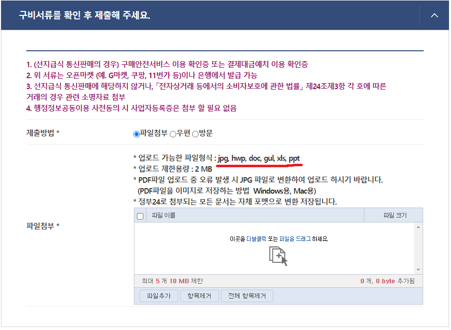 구비서류 첨부
